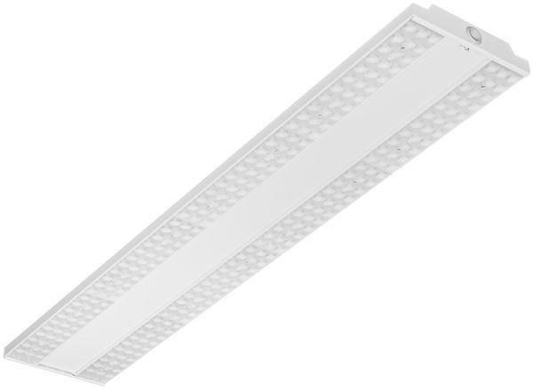 LED Hallenleuchte inklusive Versorgungsteil, dimmbar. Aluminiumgehäuse, weiß beschichtet. Lichtoptik aus Acrylglas (PMMA), ballwurfsicher. Dadurch besonders geeignet für Einsätze in Sport- und Mehrzweckhallen. Im Lieferumfang enthalten sind Aufhängeösen und Karabienerhaken.