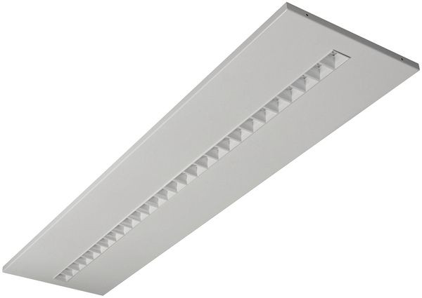 LED Einlegeleuchte. Gehäuse aus weißem Stahlblech. Zurückversetzte Linsenoptik für eine besonders gute Entblendung. Für den Einbau in modulare Deckensysteme mit sichtbarer Tragschiene (Modul 625) und daher bevorzugter Einsatzbereich in Büro- und Geschäftsräumen. Blendungsbewertung für Bildschirm- und Büroarbeitsplätze.