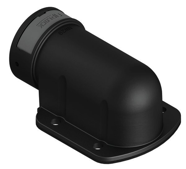 FIPLOCK®ONE 90° Flansch mit EPDM Flanschdichtung APPA-EPDM aus speziell modifiziertem Polyamid 6, halogenfrei, UV-Beständig. Erfüllt die Schutzklassen IP66, IP67, IP68 und IP69. Das 360° Verriegelungssystems lässt sich mit Hilfe eines handelsüblichen Schlitz-Schraubendrehers einfach öffnen.