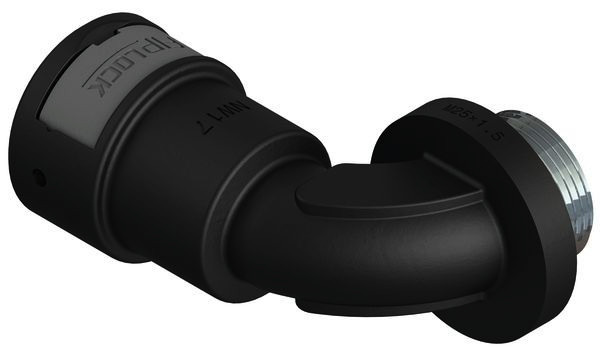 FIPLOCK®ONE Anschlussverschraubung Winkel 90° AWPA-MML aus speziell modifiziertem Polyamid 6, halogenfrei, UV-Beständig mit langen metrischen Metallgewinde aus Messing vernickelt. Erfüllt die Schutzklassen IP66, IP67, IP68 und IP69. Das 360° Verriegelungssystems lässt sich mit Hilfe eines handelsüblichen Schlitz-Schraubendrehers einfach öffnen.