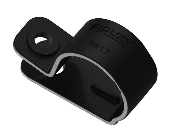 FIPLOCK® Rohrschelle mit Lasche und Fixierungsrippe CPPA aus speziell modifiziertem Polyamid 6, halogenfrei.