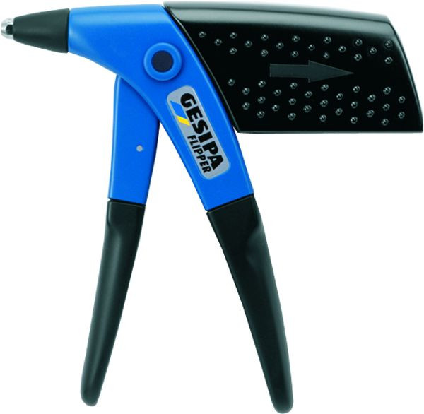 Flipper Das Hand-Blindniet- Setzgerät für optimale Einhandbedienung. Arbeitsbereich Verarbeitet alle Blindniete bis 5 mm Ø Aluminium und 4 mm Ø Stahl und Edelstahl Technische Daten Gewicht: 750 g Gesamtlänge: 221 mm Gesamthub: 16,2 mm Einzelhub: 1,8 mm Ausrüstung Mundstücke:10/18, 10/24 und 10/29 1 Montageschlüssel (am Auffangbehälter) Wartungsanleitung mit Ersatzteilliste Vorteile - Beim Schließen der menschlichen Hand erhöht sich die Kraft. Diese Erkenntnis wird durch eine spezielle Hebelanordnung zum Setzen von Blindnieten sinnvoll genutzt: ergonomisches Design - Die erforderliche Handkraft wird – beim mehrmaligen Betätigen – um ca. 40 Prozent reduziert - Betätigungshebel mit Öffnungsfeder für optimale Einhandbetätigung - Greifmechanismus mit Federrückstellung für sicheren und selbsttätigen Dornauswurf - Nietdorn-Auffangbehälter am Zangengehäuse aufsteckbar und einfach zu entleeren - Großer Geräte-Hub: vorteilhaft bei überlangen Blindnieten - Stabiles Zangengehäuse aus hochwertigem Aluminium-Druckguss - Robuster Betätigungshebel aus hochvergütetem Stahl - Gelenkbolzen verdrehsicher gelagert - Ergonomische Hebelanordnung und Griffgestaltung