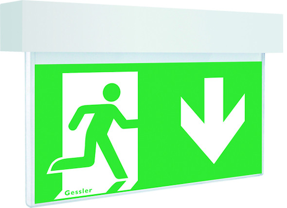 Universelle LED-Einzelbatterie-Rettungszeichenleuchte für Wand-, Decken- und Wandauslegermontage, Leuchtdichte gem. neuester Norm (DIN 4844-1): >500cd/qm, Erkennungsweite: 24 m, Gold-Auszeichnung für „LEED - Nachhaltiges Bauen“. Gehäuse: Polycarbonat, Farbe: weiß, Piktogramm-Set inkl. Anschlussspannung: 230V AC. Überbrückung: 3 h. Automatische Testfunktion: wöchentlich/jährlich. Lebenserwartung LED: ca. 50.000 h. Schutzart: IP41. Schutzklasse: II. Abmessungen: 180 x 275 x 40 mm (HxBxT)
