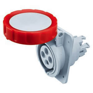 Anbausteckdose fuer industrielle Anwendungen gemaess IEC 60 309 (EN 60 309) Neigung 10° vernickelte Kontakte, Metallteile aus Edelstahl, Kunststoffteile halogenfrei gemaess EN 50 267-2-2, Anschlusstechnik: schraubenlose Zugfederklemme, Anschlussquerschnitt 2,5 - 6 mm² feindraehtig / 2,5 - 10 mm² ein- oder mehrdraehtig, , UV Bestaendig, Stossfestigkeit IK09
