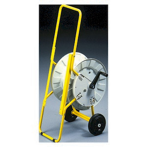 Untergestell aus Stahlrohr gelb mit Rollen und Kabeltrommel auf der Rueckseite
