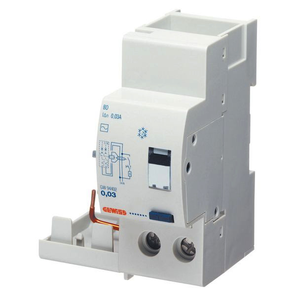 | Kurzbeschreibung | Fehlerstromschutzschalterblock zum Anbau an Leitungsschutzschalter 63/0.3A Typ A 2P 2TE |