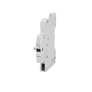 Hilfseinrichtung zur Montage auf der rechten Seite von Fehlerstromschutzschaltern IDP. An jedes Geraet koennen zwei Hilfseinrichtungen. auch unterschiedlicher Funktionalitaet. montiert werden.