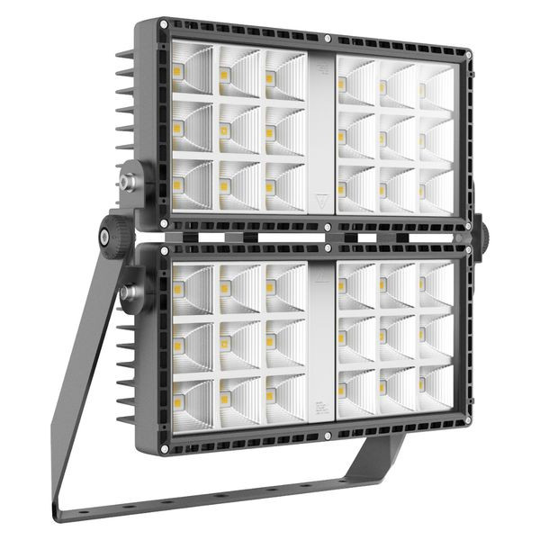Planflaechenstrahler in flacher Ausfuehrung, Serien mit 9 Optiksystemen: 3x asymmetrisch, 2 x symmetrisch und 4 x rotationssymmetrisch Leuchtenkuehlkoerper aus kupferfreiem Aluminiumdruckguss zur dauerhaft groesstmoegliche Waermeableitung, Glasabdeckung mit Rahmen aus kupferfreiem Aluminiumdruckguss und Einscheibensicherheitsglas, ESG Transmissionsoptimiertes Weissglas, wechselbar in Silikondichtung eingebettet Steckverbindungssystem mit codiertem Stecker und Drehsicherung, Steckerbuchse anschlussfertig am Gehaeuse eingebaut Hoch effiziente High-Power-CSP-LEDs auf Aluminiumkernleiterplatte fuer eine hohe thermische Abfuhrleistung, Leuchtenkoerper mit segmentiver und integrativer Kuehlrippenkonfiguration fuer eine sofortige und beschleunigte Konduktion und lageunabhaengige Konvektion, Mit Montagebuegel, Stahl, galvanisch verzinkt und beschichtet Graphitgrau