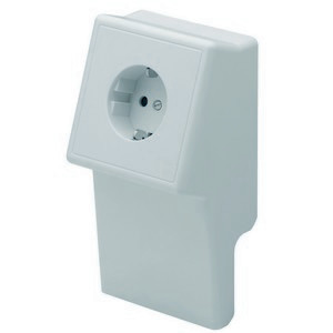 Steckdose einfach oder zweifach deutscher Standard fuer Sockelleistenkanal mit integriertem erhoehten Beruehrungsschutz. Die Steckdosen sind auf Klemmen verdrahtet.