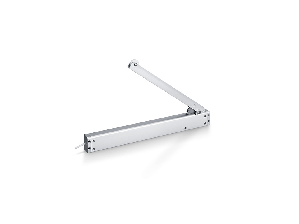 90° Türöffnung in weniger als 60 Sekunden. Starker Antrieb mit hohem Drehmoment. Anschlusskabel mittels Stecker einfach austauschbar. Integrierter Meldekontakt für die Türöffner-Steuerung oder Rückmeldungen. Tür bleibt frei begehbar durch die frei aufliegende Betätigung des Hebels mittels einer Druckrolle. Anwendungsbereiche: Einsatz im Zuluftsystem, bei dem große Öffnungswinkel gefordert sind. Ein- und zweiflügelige RWA-Zulufttüren. Montage auf der Band- oder Bandgegenseite.
