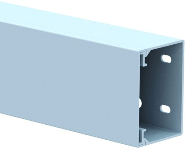 Leitungsführungskanal aus PVC nach DIN EN 50085-2-1 zur Leitungsverlegung an Wand und Decke, bestehend aus komplett übergreifendem Oberteil und Unterteil mit zweireihiger Bodenlochung zur Befestigung, pro 2 Meter Lieferlänge sind 4 frei verschiebare Kabelhalteklammern inklusive.
