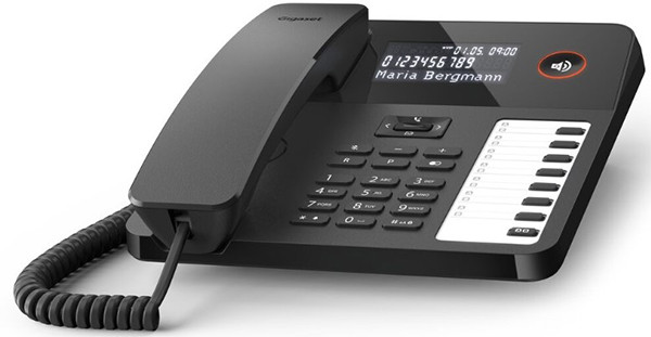Schnurgebundenes Tischtelefon, LC-Display mit LED- Hintergrundbeleuchtung, 7 doppelbelegbare Direktwahltasten, Freisprechfunktion und Headset-Anschluss, Telefonbuch mit 100 Einträgen, 10 Klingeltöne, Für Wandmontage und Telefonanlagen geeignet, Farbe:schwarz.