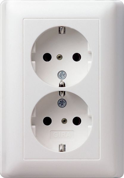 SCHUKO-Doppelsteckdose 16 A 250 V~ mit erhöhtem Berührungsschutz (Safety Plus) und Vollplatte für Unterputz-Gerätedose 1fach Reinweiß glänzend