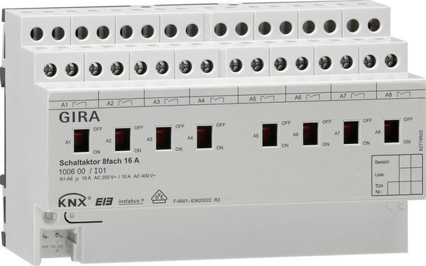 | Kurzbeschreibung | Schaltaktor 8f 16 A Hand KNX REG |