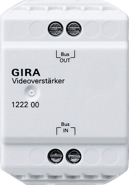 - Der Videoverstärker dient zur Reichweitenverlängerung in Gira Türkommunikationsanlagen mit Videofunktion.