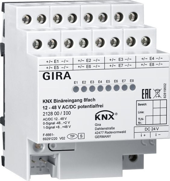 | Kurzbeschreibung | Binäreing. 8f 12 - 48 V AC/DC pot.frei KNX REG |