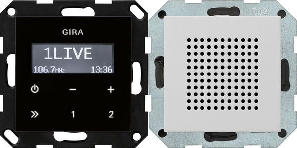 - Der Einsatz Radio ist kompakt in einem Unterputz-Einsatz untergebracht und kann somit in eine einzelne Gerätedose installiert werden.