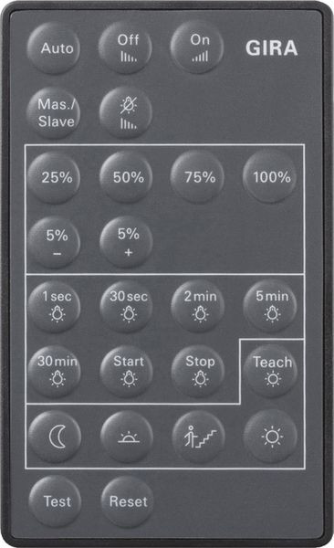 - Infrarot-Fernbedienung zur manuellen Bedienung und Einstellung von Sensotec, Sensotec LED und Cube.