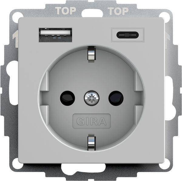 SCHUKO-Steckdose 16 A 250 V~ mit erhöhtem Berührungsschutz (Safety Plus) und USB-Spannungsversorgung 2fach Grau matt (lackiert) Typ A / Typ C
