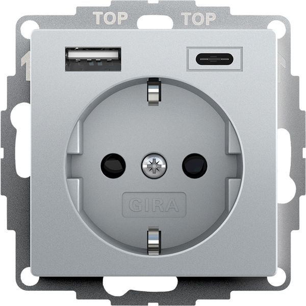 SCHUKO-Steckdose 16 A 250 V~ mit erhöhtem Berührungsschutz (Safety Plus) und USB-Spannungsversorgung 2fach Farbe Alu Typ A / Typ C