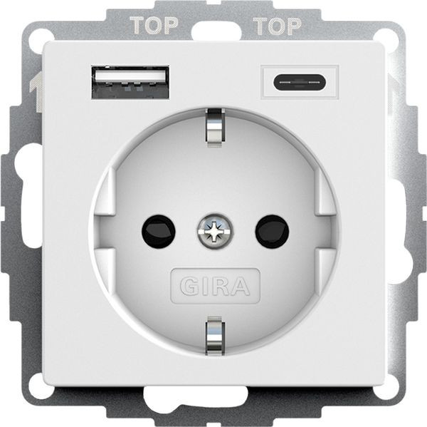 SCHUKO-Steckdose 16 A 250 V~ mit erhöhtem Berührungsschutz (Safety Plus) und USB-Spannungsversorgung 2fach Reinweiß seidenmatt Typ A / Typ C