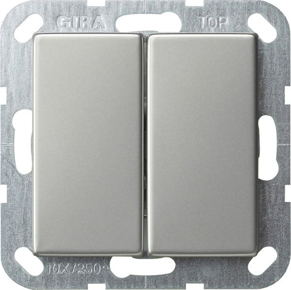 Tastschalter 10 AX 250 V~ mit gerade stehender Wippe 2fach Edelstahl Serienschalter Lieferfähigkeit vorausgesetzt. Nachfolger: 3125 00 + 3495 xx / Lieferbar ab 08/2024.