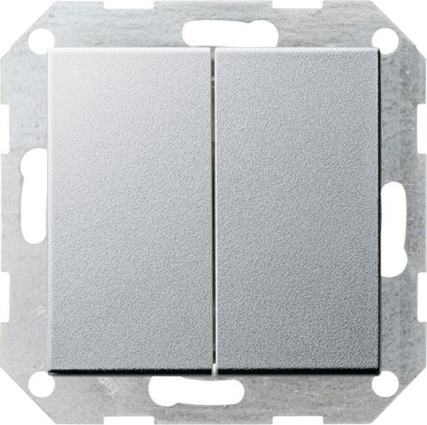 Tastschalter 10 AX 250 V~ mit gerade stehender Wippe 2fach Farbe Alu Wechselschalter 2fach Lieferfähigkeit vorausgesetzt. Nachfolger: 3128 00 + 3495 xx / Lieferbar ab 08/2024.