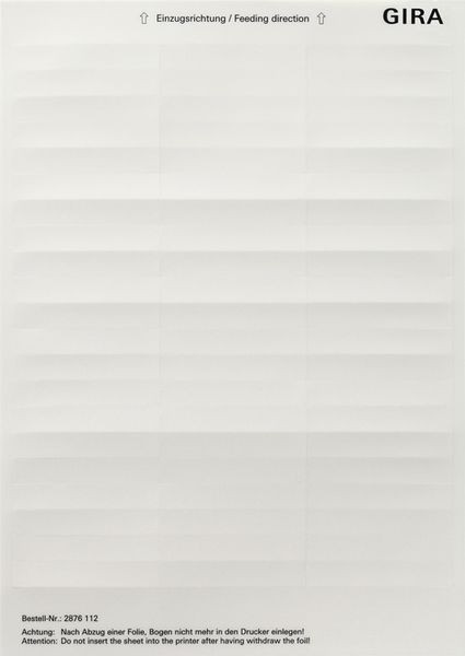 - Um Ihren Druck zu gestalten, geben Sie auf der folgenden Website die Gira Bestellnummer Ihrer Textetiketten ein.