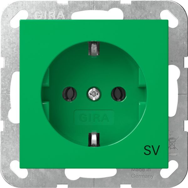 SCHUKO-Steckdose 16 A 250 V~ Grün glänzend mit grüner Abdeckung und Aufdruck "SV"