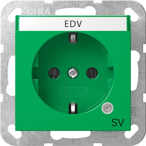 SCHUKO-Steckdose 16 A 250 V~ mit grünem Kontrolllicht und Beschriftungsfeld Grün glänzend mit grüner Abdeckung und Aufdruck "SV"