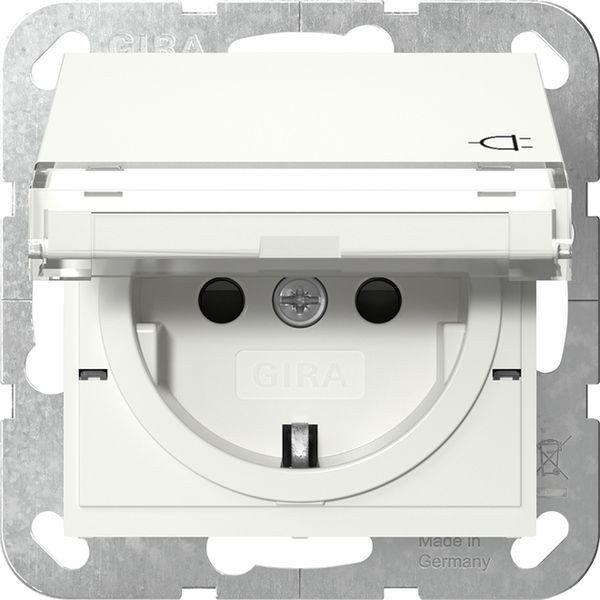 SCHUKO-Steckdose 16 A 250 V~ mit Klappdeckel, Beschriftungsfeld und erhöhtem Berührungsschutz (Safety Plus) Reinweiß glänzend System 55