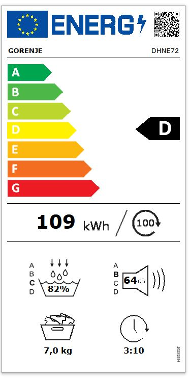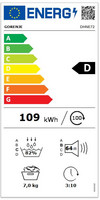 | Gewichteter Energieverbrauch pro 160 Trocknungszyklen im Programm Baumwolle | 109 kWh |