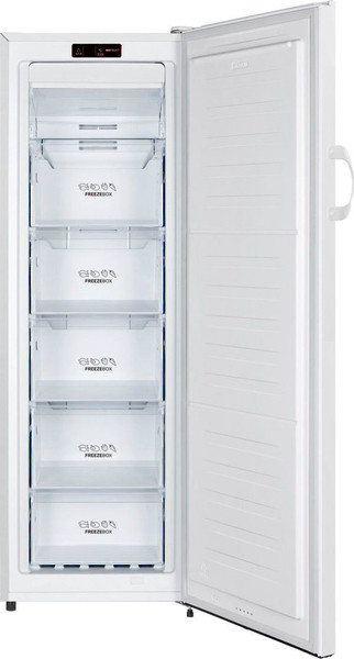 Regelmäßiges Abtauen des Gefrierfachs ist mit der No Frost-Funktion Vergangenheit - ein Umluftsystem leitet die Luftfeuchtigkeit aus dem Gefrierraum ab, wodurch das Gerät nie wieder abgetaut werden muss. Es sind fünf Gefrierschubladen und ein Gefrierfach mit Klappe zum Verstauen des Einkaufs integriert. Die Temperatur im Gerät wird auf dem Display angezeigt, das innen installiert ist. Wenn die Tür zu lange offen steht, macht der Gefrierschrank über ein akustisches Warnsignal darauf aufmerksam. Die Möglichkeit der rechts- und linksseitigen Montage ist bei der Tür des Geräts besonders beachtenswert. Der Gefrierschrank »FN 4172 CW« verfügt des Weiteren über höhenverstellbare Füße.
