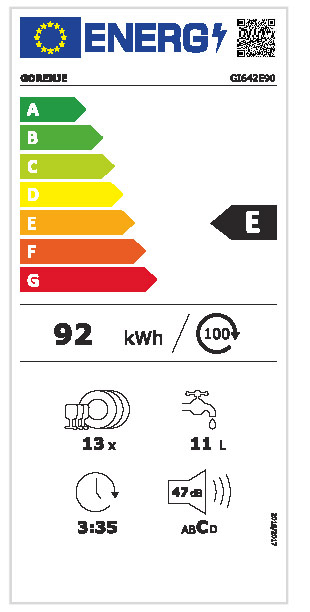 | Energieeffizienzklasse Geschirrspüler (2019/2017/EU) | E |
