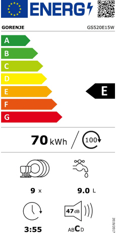 | Energieeffizienzklasse Geschirrspüler (2019/2017/EU) | E |