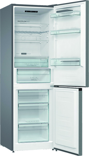 Kühlteil: Multiflow 360°C, LED Innenbeleuchtung, 4 Glasabstellflächen, Flaschenhalter, Multi-Box, CrispZone-Gemüsefach mit SmartHumidity (automatische Feuchtigkeitskontrolle), Convert ZeroZone (kann sich in eine zusätzliche CrispZone-Schublade für Obst und Gemüse verwandeln),