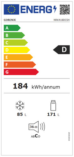 | Energieeffizienzklasse (2017/1369/EU) | D |