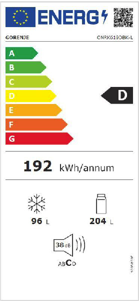 | Durchschnittlicher Energieverbrauch in kWh/Jahr | 192 kWh |