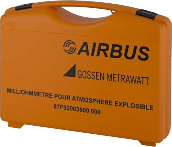 Milliohmmeter für den Einsatz in EX-gefährdeten Bereichen. Kompaktes Milliohmmeter für Messung von niederohmigen Übergängen in explosionsgefährdeten Bereichen z. B. Kontakte innerhalb des Flugzeugtanks (Bonding-Test) sowie für allgemeine Niederohm-Messungen innerhalb oder außerhalb des Ex-Bereichs z. B. an der Flugzeugaußenhaut (Blitzschutz, "Ableittest" (Wick-Test)). Typ AIRBUS Art.nr. M227G Ident-No. 97F92003500 lt. AMM (Aircraft Maintenace Manual) Messbereiche: 30 mO, 300 mO, 3 O, 30 O Auflosung: 10 µO Messverfahren: Kelvin-Anschluss (Vierleitermessung) DATA-Hold-Speicher: 1200 Messwerte EX-Kennzeichnung: Ex II 2 G EEx ia IIA T4 Baumusterprüfbescheinigung: INERIS 05 ATEX 0040 DAkkS-Kalibrierschein Gewahrleistung: 3 Jahre fur Material- und Fabrikationsfehler, 1 ... 3 Jahre für Kalibrierung (je nach Anwendung) . 1 METRA HIT?27EX1 Gummischutzhülle GH18 (blau) inkl. Tragriemen8 Batterien Ex-zugelassen1 Kelvin-Sonde Typ KC27 (1 Stück – kein Set)1 Kelvin-Clip Typ KC4 (1 Stück – kein Set)1 Hartschalenkoffer HC301 DAkkS-Kalibrierschein1 Ex-Zertifikat INERIS 05ATEX00401 Bedienungsanleitung