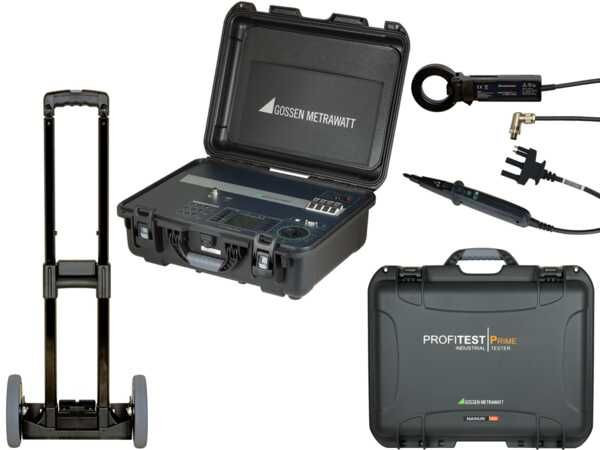 Standard Prüfgerät Set zur normgerechten Prüfung der Wirksamkeit von Schutzmaßnahmen in elektrischen Installationen nach DIN VDE 0100-600, Maschinen und Anlagen nach VDE 0113-1, PV-Anlagen nach VDE 0126-23 und E-Ladestationen nach VDE 0122-1. 1x Profitest Prime / M516A 1x Trolley für Koffersystem PRIME / Z506F 1x I-SK4 Prüfsonde / Z516T 1x PRIME Koffer / Z506A 1x PROFITEST CLIP / Z506H 1x IZYTRONIQ Business Advanced / S102S
