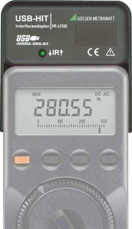 USB-Schnittstellenadapter für Multimeter METRAHIT 2xx, 30x und WORLD. Der Schnittstellenadapter kann auf alle Multimeter METRAHIT 2xx, 30x, WORLD aufgesteckt werden. Die Daten werden bidirektional und galvanisch getrennt vom Multimeter auf den Adapter übertragen und auf die USB-Schnittstelle für PCs und Laptops umgesetzt. Siehe auch USB-Pack für METRAHITs inklusive Software METRAwin 10. Mit diesem Adapter können Sie Multimeter (Kalibratoren, Milliohmmeter) der Serie METRAHIT 22 ... 29S/M/C/i, 30M und WORLD die mit einer seriellen IR-Schnittstelle ausgestattet sind mit der USB-Schnittstelle eines PCs verbinden. Der Adapter ermöglicht die Datenübertragung zwischen Multimeter und PC.. Die aktuellen Treiber werden mit der Software Driver Control für Windows XP, 7, 8, 8.1, 10 und 11 auf der Website als Download zur Verfügung gestellt.. Lieferumfang: 1 USB-Hit Schnittstellenadapter 1 USB-B Kabel (1m) Die aktuellen Treiber werden mit der Software Driver Control für Windows XP, 7, 8, 8.1, 10 und 11 auf der Website als Download zur Verfügung gestellt.