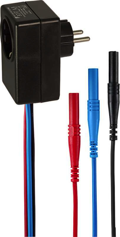 Leistungs- und Strommessadapter für Multimeter.. Der Messadapter PMA16 ist ein Zwischenstecker zur Messung von Strom- der Leistungsaufnahme eines 1-phasigen Netzgerätes mit Schukostecker. . PMA16 zur sicheren und einfachen Messung der Strom- und Leistungsaufnahme von Geräten mit Schukostecker. Leistungsmessung nur mit METRAHIT ENERGY oder 29S. Die herausgeführten Messkabel mit 4mm Sicherheitssteckern können direkt an die Messbuchsen eines Multimeters angeschlossen werden.. Der Leistungsmessadapter PMA 16 ist ein Zwischenstecker zur Messung der Strom- und Leistungsaufnahme eines mit Netzstecker angeschlossenen einphasigen Verbrauchers. Der Schutzleiter des Verbrauchers bleibt dabei in Funktion. Strommessung: Im Adapter wird der Stromkreis des Netzgerätes aufgetrennt und zur Messung mit 2 Messkabeln mit 4mm Sicherheitssteckern herausgeführt. Leistungsmesssung: Wie Strommessung jedoch zusätzlich mit parallel herausgeführter Spannung. Anschluss an das Messgerät mit 3 Messkabeln mit 4mm Sicherheitssteckern. .