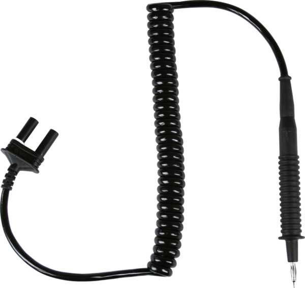 Sondenleitung 2 m mit 4 mm Prüfspitze (gewendelt). Sondenleitung mit einer Länge von 2 m, 4 mm Prüfspitze, gewendelte Ausführung, CAT II 300 V / 16 A .