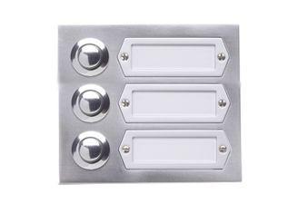 Einreihig, mit glatt-silberner Oberfläche. Die Aluminiumrähmchen der Namenschilder sind eingelassen.