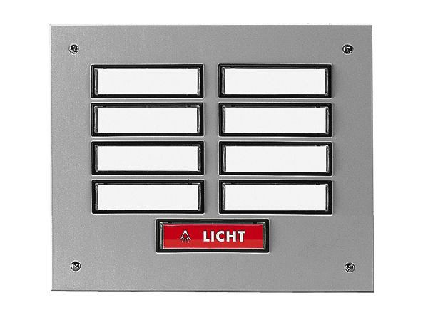Breite: 202 mm Für UP-Montage, mit beleuchtbaren Flächentastern, Aluminium silberfarbig eloxiert (Serie ETA 80.. EV1), zweireihig, max. 24V~ (1,5 A) / 24 V= (1,5 A) Breite: 202 mm