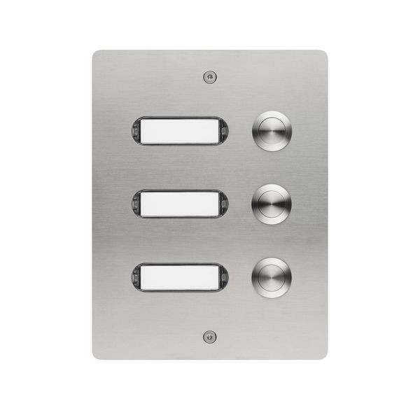Die Funk-Etagenplatte V2A AP LED ist die ideale Lösung für moderne Hauseingänge mit drei Wohneinheiten. Mit ihrem gebürsteten Edelstahlfinish bietet sie ein elegantes und langlebiges Design, das jedem Wetter trotzt. Die beleucht