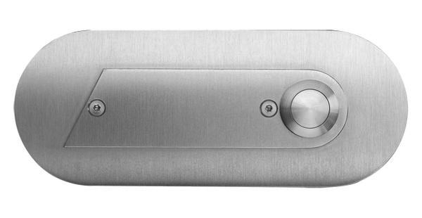 Etagenplatte VA 4 mm ETA S 302 - Edelstahl inkl. Dichtung; max. 12 V AC (1,5A) Min: 5 V (1 mA); Aufputzmontage, Form oval; 1 Klingeltaster Edelstahl; inkl. Befestigungsmaterial; 150 x 60 mm