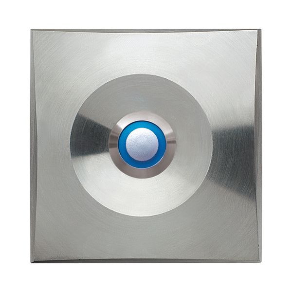 LED Etagenplatte, Edelstahl massiv, LED bla, max.12VAC-DC(1,5A)Min:5V(, Montage nur auf UP-Dose, Einbautiefe ca. 10mm, IP4, 1 Klingeltaster Edelstahl, 82x28x82mm