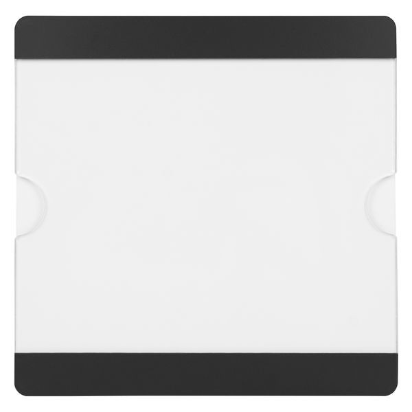 Durch das Einschieben eines Papierbogens mit den Abmessungen 105 mm (H) x 130 mm (B) kann der Inhalt sekundenschnell gewechselt werden. Die abgerundeten Ecken sowie die anthrazitfarbenen Balken an der oberen sowie unteren Kante bilden einen modernen, schlichten Rahmen für eine individuelle Beschriftung.