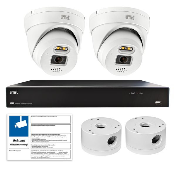 • 2 x Videokamera 1099/541: Hochmoderne Dome-Kameras mit integrierter Abschreckungsfunktion (Sirene, Blitzlicht & Sprachansagen), ideal zur präventiven Einbruchabwehr.
